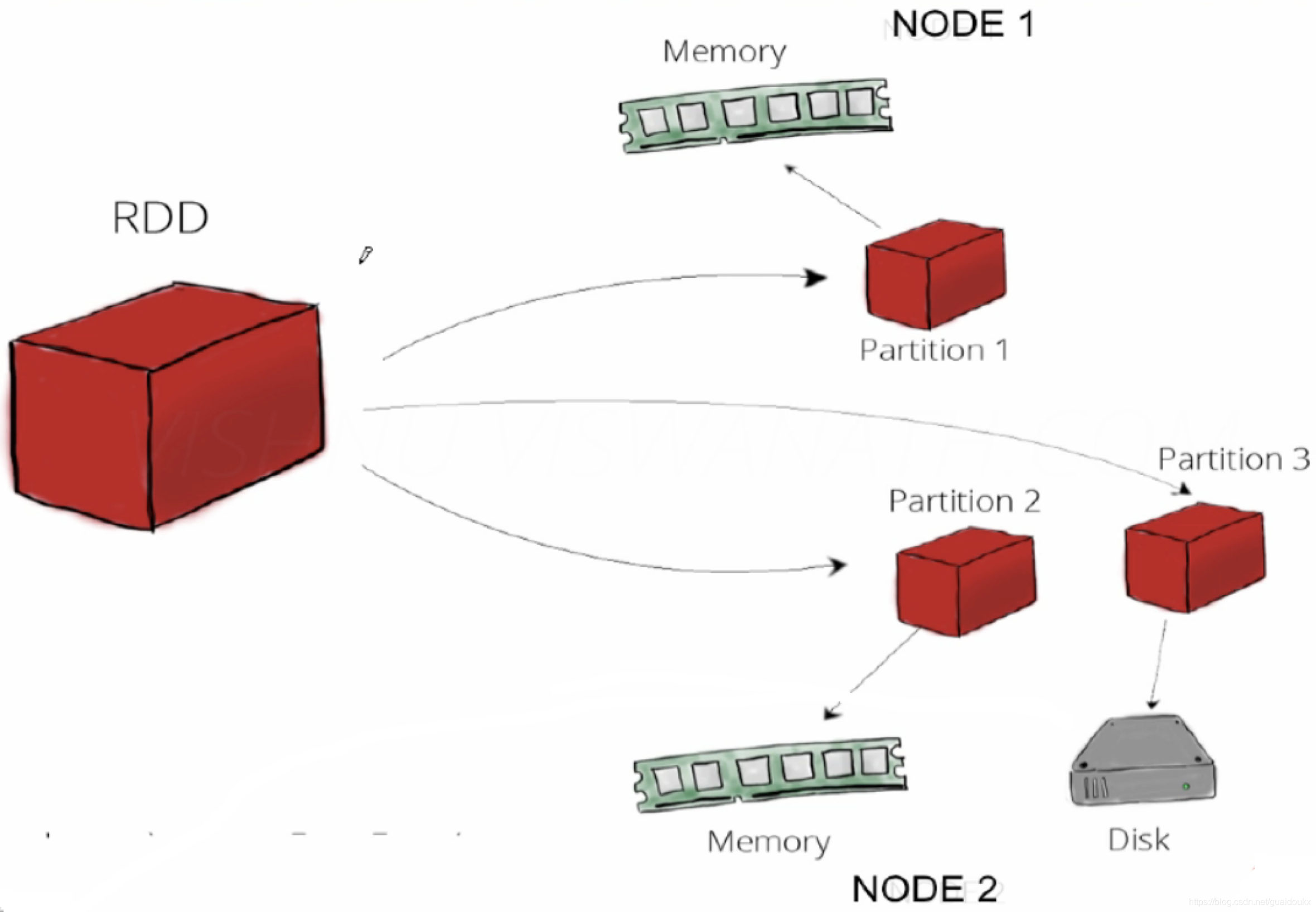 •可以存储在磁盘,也可以存在内存中(多种存储级别)