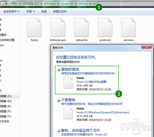 步骤3、将修改好的hosts文件,重新复制到 C:\Windows\System32\drivers\etc ,覆盖原来的hosts文件。