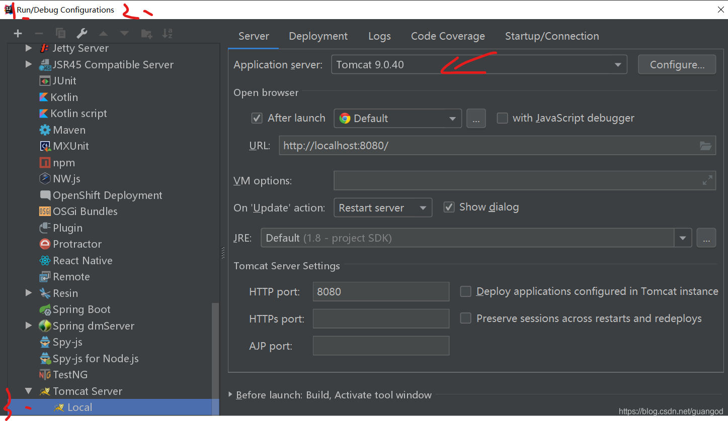 打开idea,如下图:在debug Configurations中Templates中tomcat server中 设置