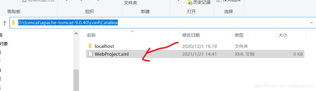 在浏览器输入路径:http://localhost:8080/xml文件名/访问的文件名; 每个项目分开配置,tomcat 将以\conf\Catalina\localhost 目录下的 xml 文件的文件名作为 web 应用的上下文路径,而不再理会 <Context>中配置的 path 路径,因此在配置的时候,可以不写 path。如下图: