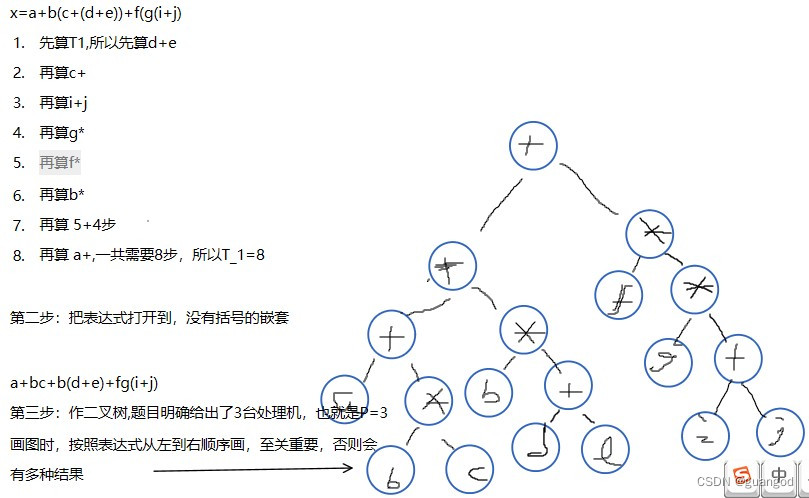 根据 树或表达式,判断有几台处理机,也就是P的值
