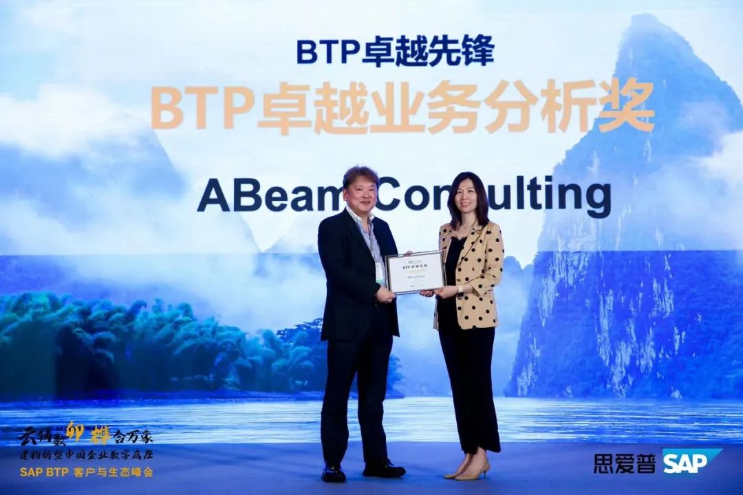 借此年度大会,SAP对于ABeam在过去一年的表现给予充分肯定,在合作伙伴颁奖典礼上,授予ABeam Consulting「SAP BTP 卓越业务分析奖」。