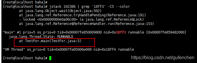 方法:jstack 102386 | grep ‘18ff3’ -C5 --color