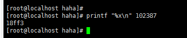 这是十进制的数据,需要转化为十六进制:printf "%x\n" 102387