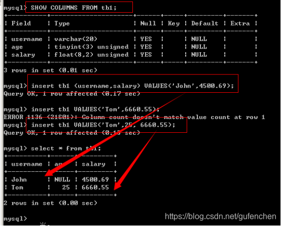 mysql>INSERT tb4 VALUES(4,'Tom'); mysql>INSERT tb4 VALUES(22,'John');成功;