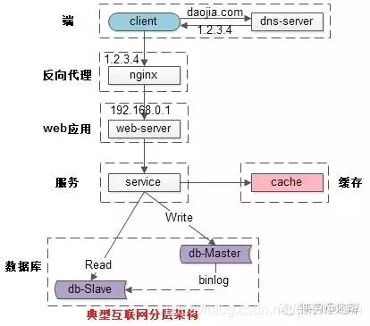 接下来我们看下典型互联网架构中,如何通过冗余+自动故障转移来保证系统的高可用特性。