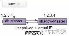 以mysql为例,可以设置两个mysql双主同步,一台对线上提供服务,另一台冗余以保证高可用,常见的实践是keepalived存活探测,相同virtual IP提供服务。