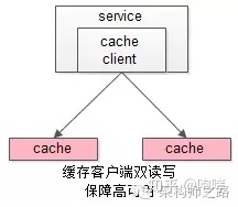 缓存层的数据冗余又有几种方式:第一种是利用客户端的封装,service对cache进行双读或者双写。
