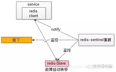 自动故障转移:当redis主挂了的时候,sentinel能够探测到,会通知调用方访问新的redis,整个过程由sentinel和redis集群配合完成,对调用方是透明的。