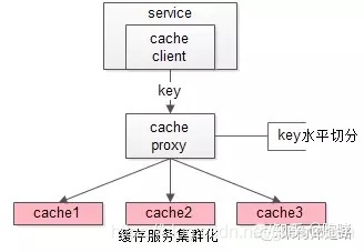 将kv缓存封装成服务集群,上游设置一个代理(代理可以用集群冗余的方式保证高可用),代理的后端根据缓存访问的key水平切分成若干个实例,每个实例的访问并不做高可用。