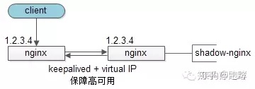 自动故障转移:当nginx挂了的时候,keepalived能够探测到,会自动的进行故障转移,将流量自动迁移到shadow-nginx,由于使用的是相同的virtual IP,这个切换过程对调用方是透明的。