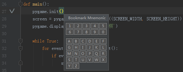 在 PyCharm 中,将光标移动到需要创建书签的行,按 F11 可以创建一个匿名书签,匿名书签的显示是行号后有一个 √,如下图: