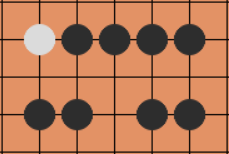 四颗同色棋子连在一起,并且一边有对方棋子阻挡,或者四颗棋子不是连的,当中有个空挡,这时只有一个连五点。