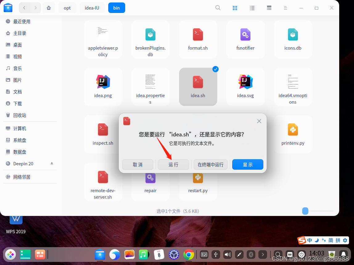 打开解压好的文件找到idea.sh,复制到桌面方便下次打开。
