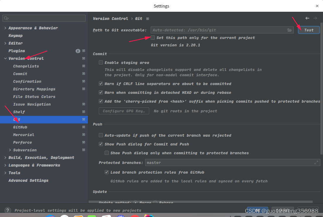 点击此处安装git插件,这里我提前安装过,可以点击test检查是否安装,没有安装会提示如何安装。