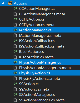 PhysisActionManager物理动作管理者,实现了动作管理者接口,其下的飞行动作实现是物理运动,也即使用了