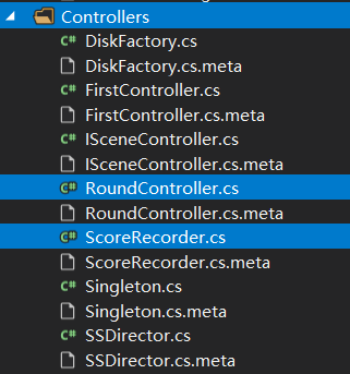 FisrtController)与回合控制器(RoundController)解耦,场景控制器只需要接管回合控制器即可,具体的记分以及飞碟生产的人物都转交给回合控制器来完成,减轻场景控制器的任务量。 - 新增记分员(