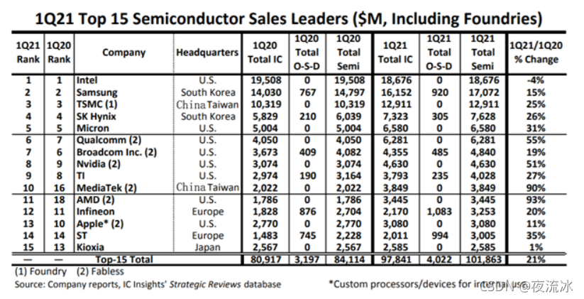 下图:Foundry公司排名,台积电一家独大。