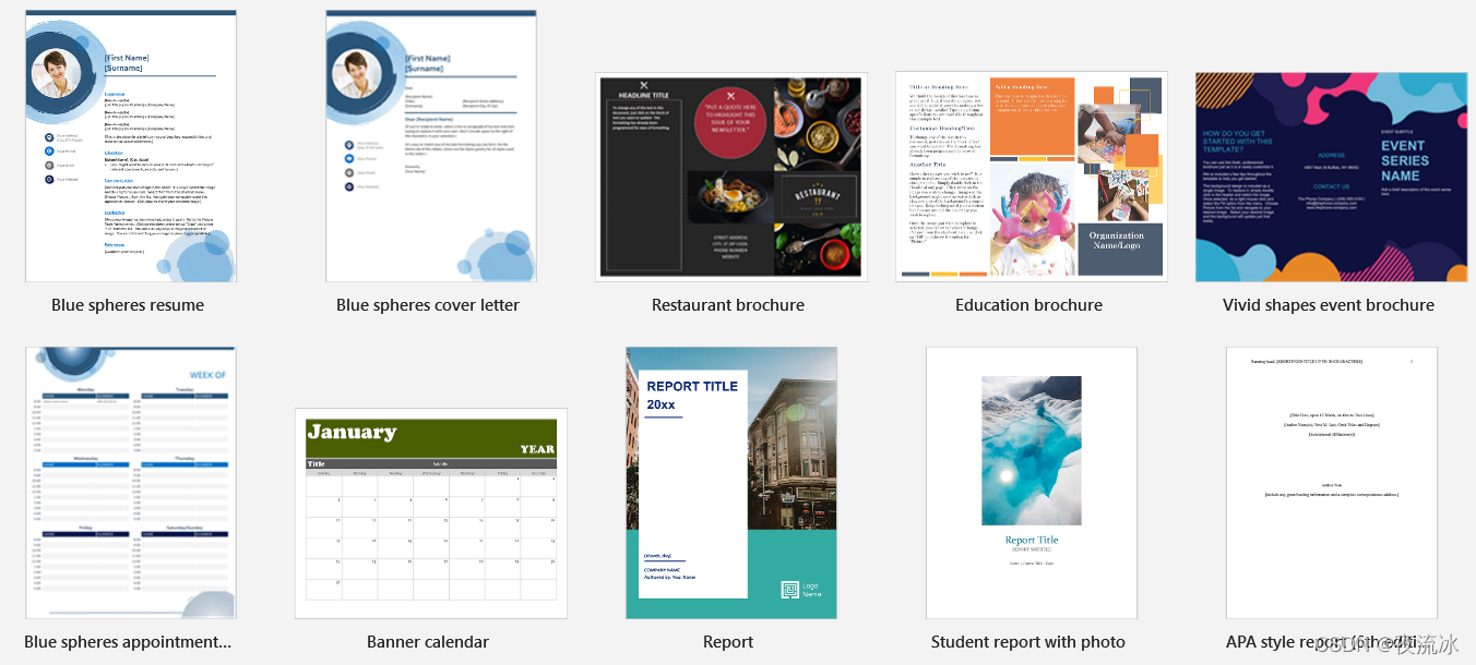 这里面有日历、简历、约会日程表、宣传册、报告、证书、奖状、信头、聚会邀请单。