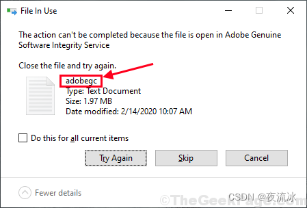 比如提示:“The action can’t be completed because the folder is open in another program“。