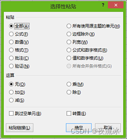 | 打开“选择性粘贴”对话框。 | Ctrl+Alt+V |
