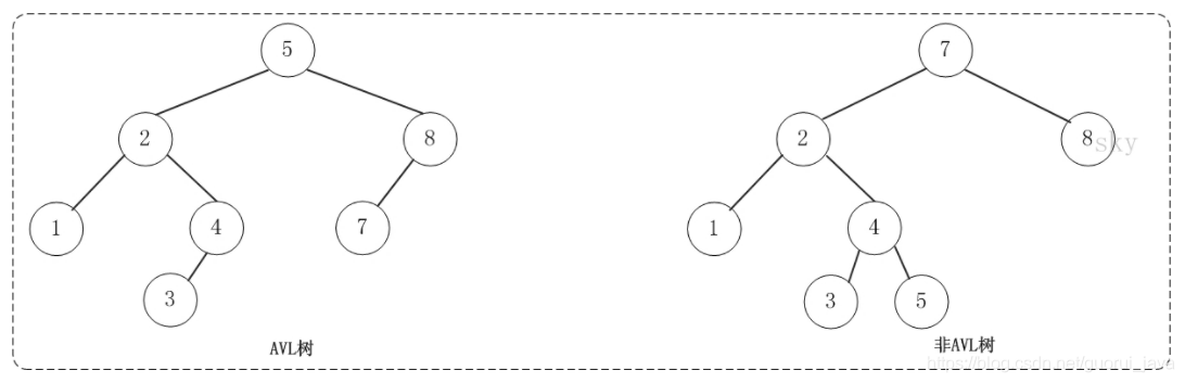 但是这棵二叉树的查询效率就低了。因此若想二叉树的查询效率尽可能高,需要这棵二叉树是平衡的,从而引出新的定义——平衡二叉树,或称AVL树。