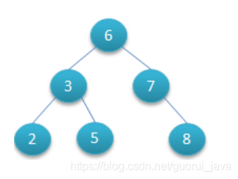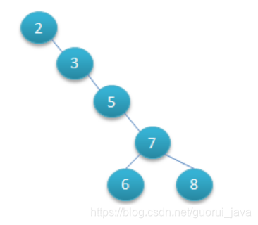 二叉查找树可以任意地构造,同样是2,3,5,6,7,8这六个数字,也可以按照下图的方式来构造: