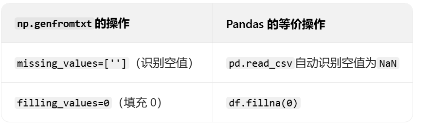 filling_values=0,# 缺失值填充为0(默认是NaN)