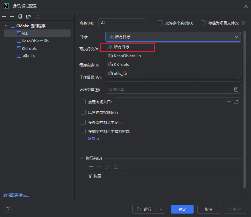 ②选择要编译的程序,可以直接选择目标程序,会自动编译依赖库,也可以直接选择编译全部,需要手动添加编译配置