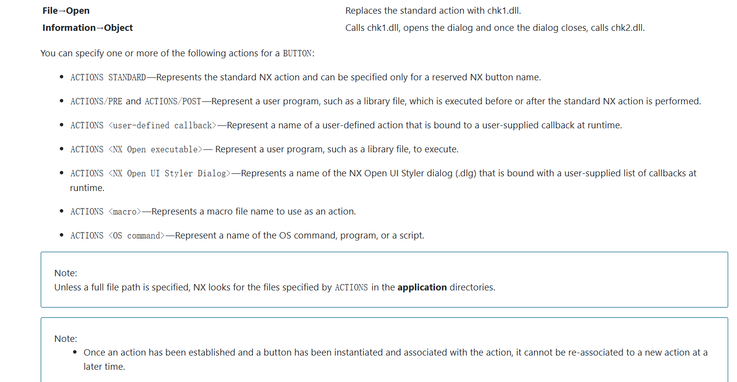 可以通过该功能实现,打开浏览器,运行脚本,打开第三方应用程序的功能,我这里使用这个功能实现了再NX2306中通过菜单调用打开本地C++帮助文档的功能(当然如果你没有本地文档也可以配置在线文档的地址),以及通过调用VB脚本弹出版本信息的功能