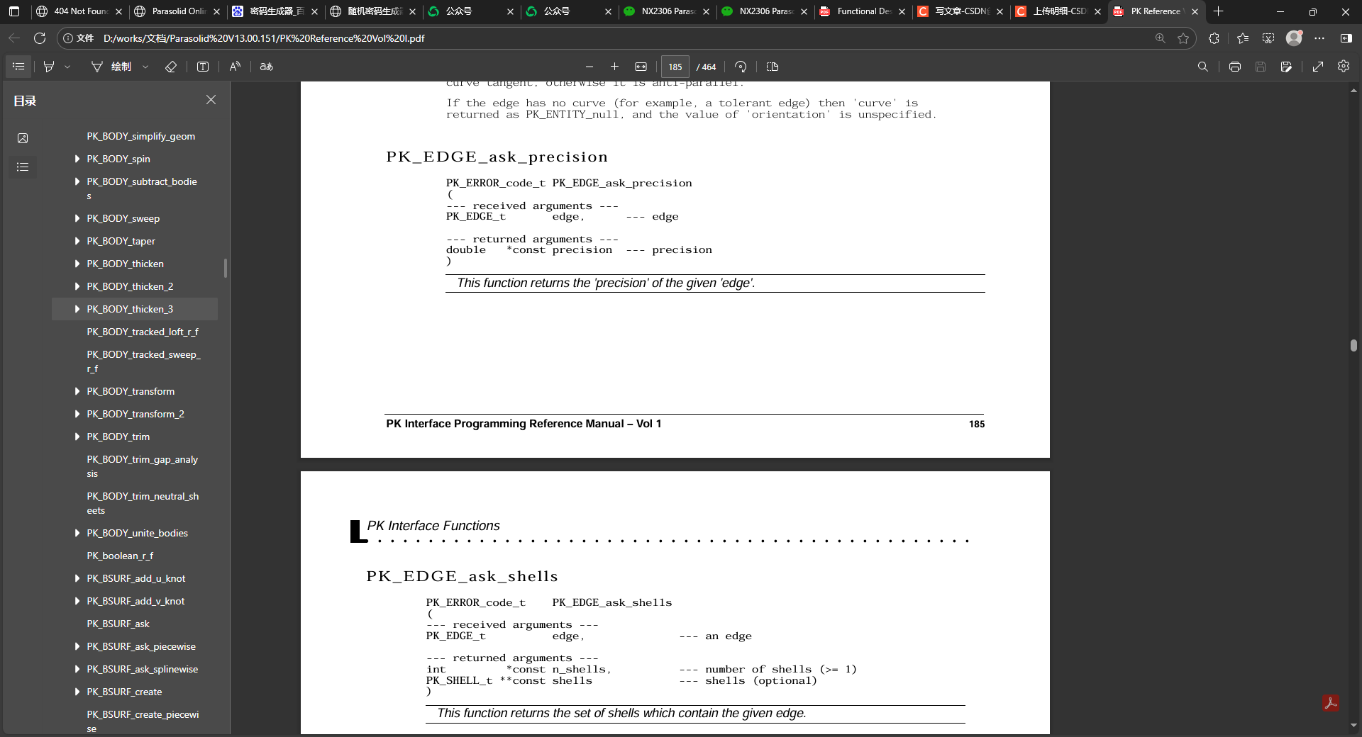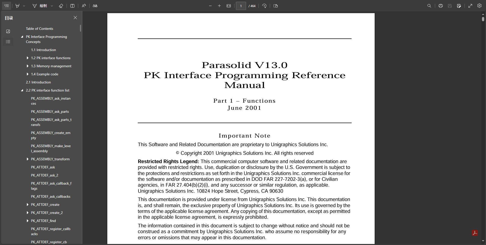 我只能说,这可能是你能看到的最全的文档了 1、功能描述文档 2、接口说明文档 3、下载地址: NX2306ParasolidV13.00.151全套说明文档,内含PK函数文档资源-优快云下载https://download.youkuaiyun.com/download/guoxiaokai527/92191709 4、头文件和依赖库可以下载这个 parasolid内核函数(库和头文件)_内核函数查找工具资源-优快云下载https://download.youkuaiyun.com/download/raley66/10742780?spm=1001.2014.3001.5503