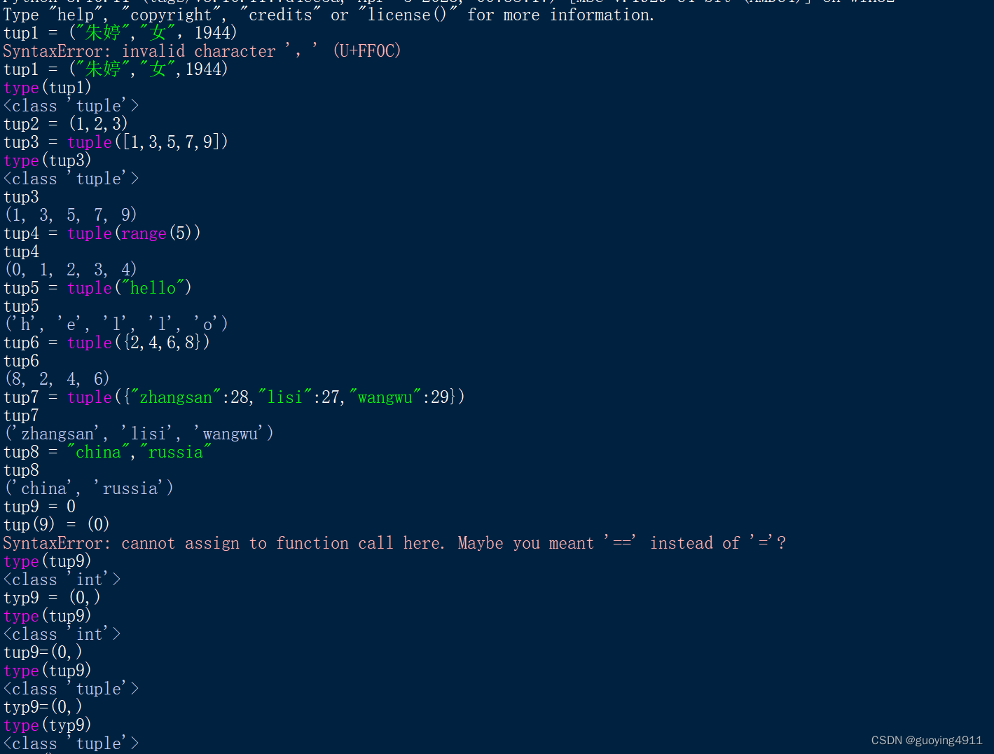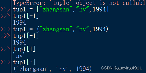 1、在定义时元组的所有元素都放在一对圆括号里,而列表是放在方括号里。