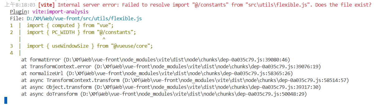 在我们将'../constants'改为'@/constants '时候会发现以下错误