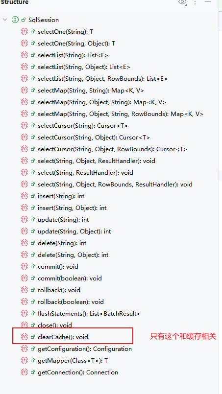 - 如果中间sqlSession去执行commit操作(增删改),则会清除sqlSession中的一级缓存,这样可以让缓存中存储的是最新的数据,避免脏读。