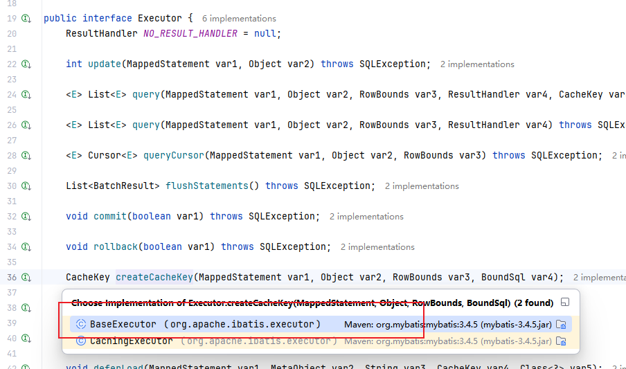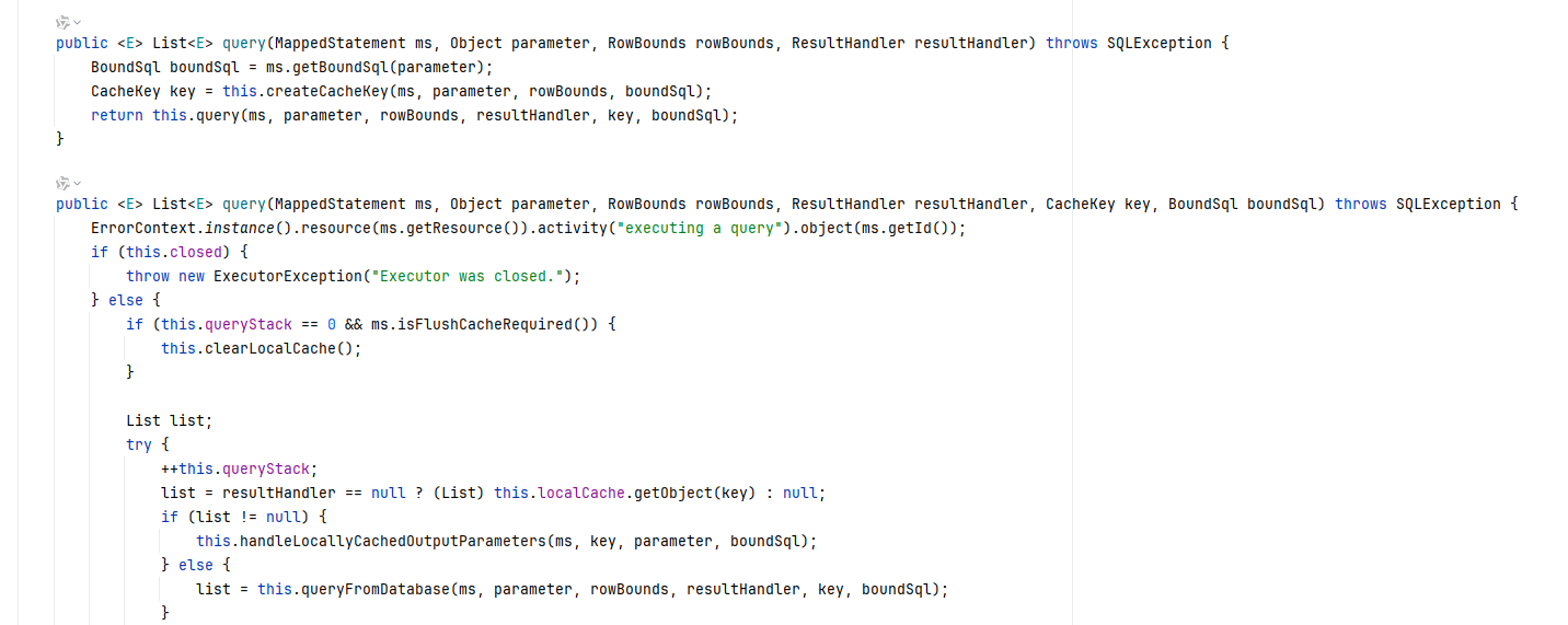 我们看到了可以拦截Executor接⼝的部分⽅法,⽐如update,query,commit,rollback等⽅法,还有其他接⼝