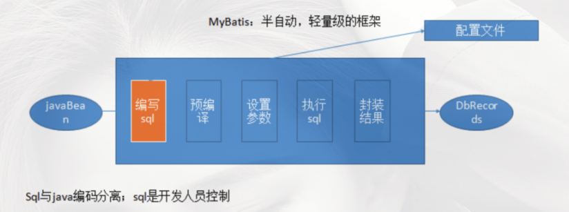 Mybatis:一款基于ORM的半自动轻量级持久化框架,支持定制化SQL,存储过程以及高级映射。