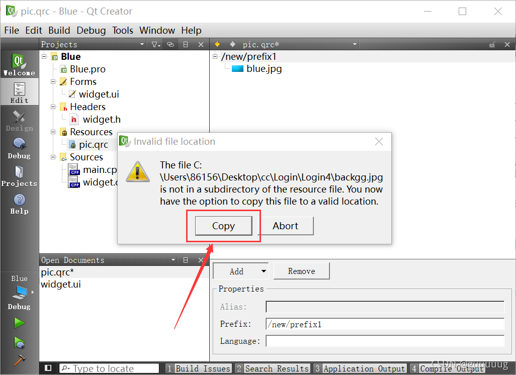 注意:记得把图片copy到项目工程的文件夹中,不然可能会报错,报错点击copy在保存就行了。