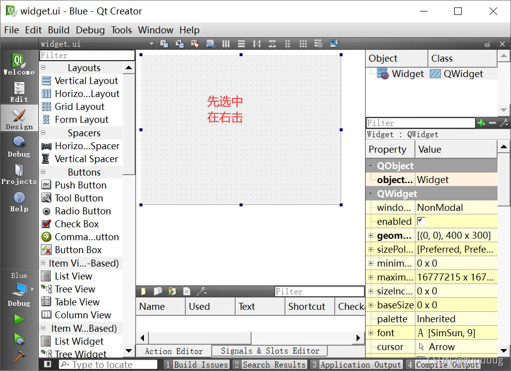 先打开UI界面,选择Widget,右击,选择Change StyleSheet,