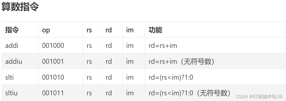| 操作符 | 源操作数寄存器 | 目的操作数寄存器 | 立即数 |