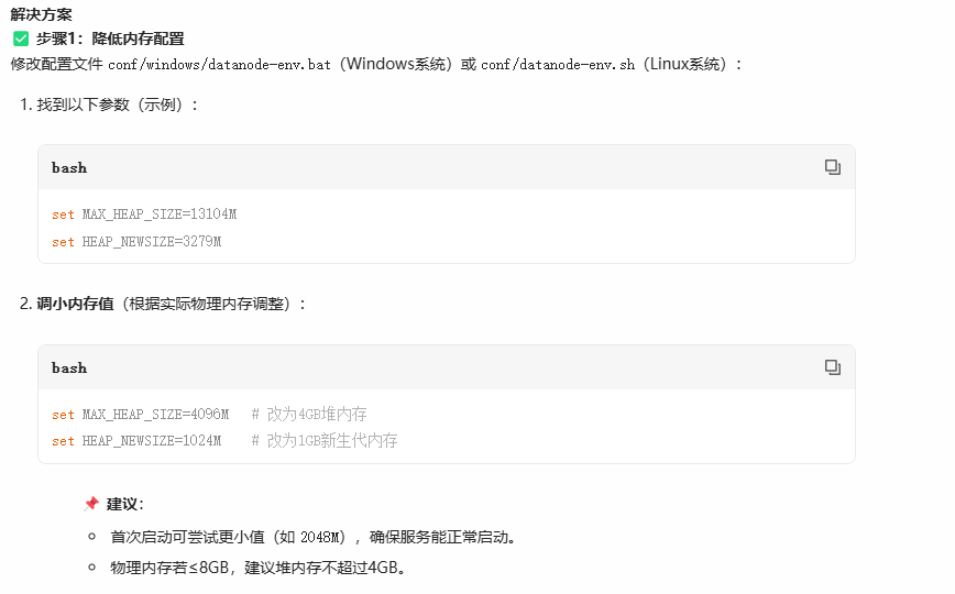 - 若仍失败,逐步降低内存值(如从8GB→4GB→2GB)直到启动成功。