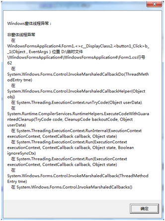 无论是Windows窗体程序还是WPF程序,我们都看到捕获的异常当中分为"窗体线程异常"和"非窗体线程异常"。如在Windows窗体程序中,如果在窗体线程中,