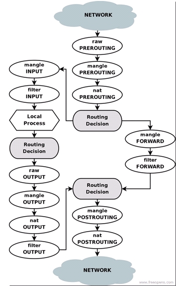 预备知识(转): iptable有三种队列(表)规则,mangle queue, filter queue, nat queue。