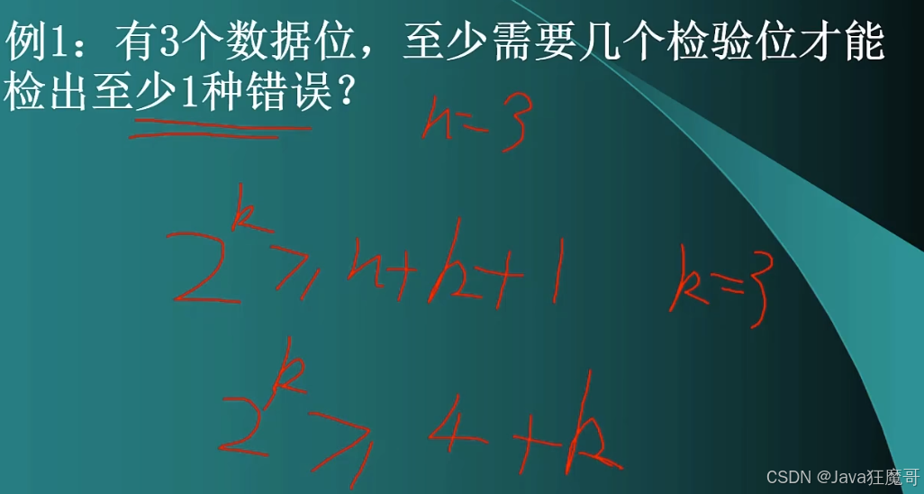 设数据位的位数为 n,校验位的位数为 k,则需要满足不等式 2k≥n+k+1。通过这个不等式可以计算出最少需要的校验位数量。