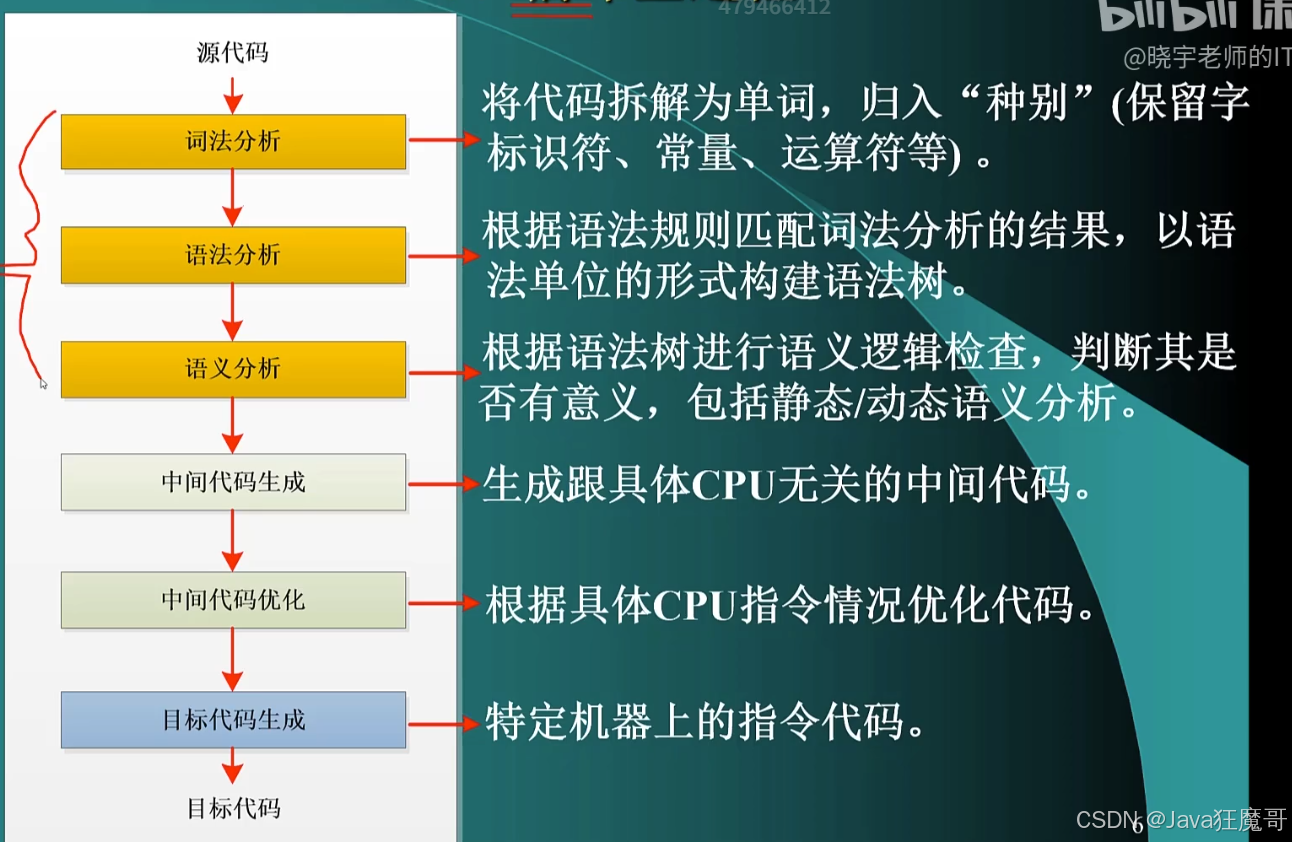 #开头的预处理指令,进行宏替换、文件包含与条件编译,生成待编译代码。 - 编译:对预编译后的代码做词法、语法、语义分析和优化,将其转化为汇编代码。
