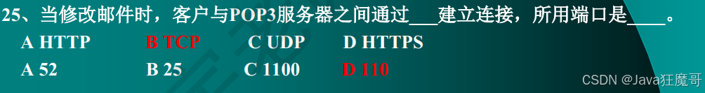 POP3 协议默认使用的端口号是 110 。52 端口不是与 POP3 相关的端口;25 端口是 SMTP(简单邮件传输协议)用于发送邮件时,邮件服务器之间通信的默认端口;119 端口是 NNTP(网络新闻传输协议)的默认端口 。