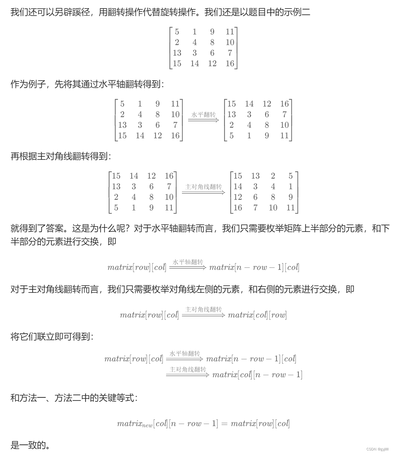 输入:matrix = [[5,1,9,11],[2,4,8,10],[13,3,6,7],[15,14,12,16]] 输出:[[15,13,2,5],[14,3,4,1],[12,6,8,9],[16,7,10,11]]