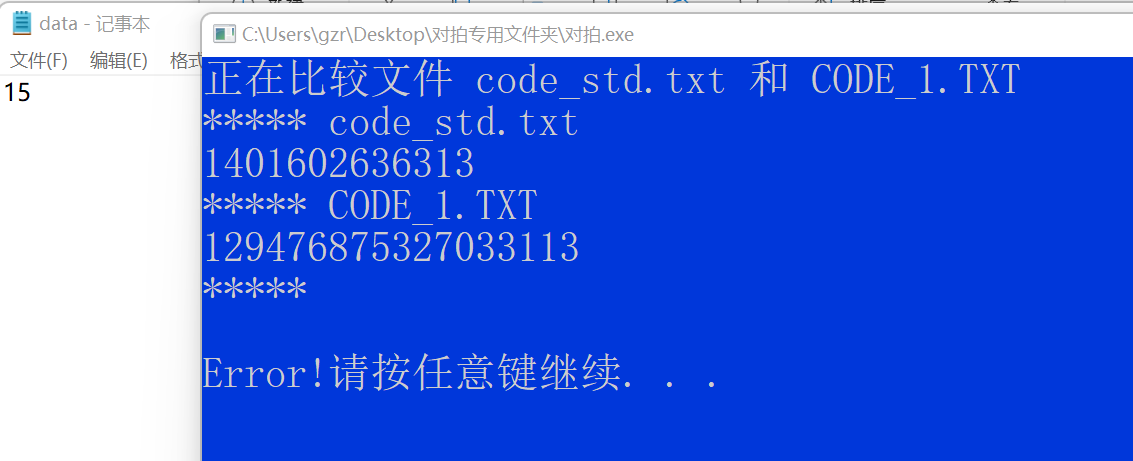 需要四样东西,待测代码、标准代码、数据生成器、对拍,放在同一个文件夹内