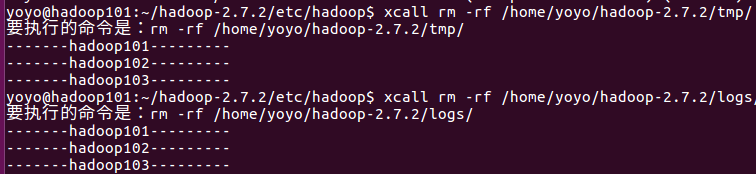 xcall rm -rf /home/yoyo/hadoop-2.7.2/tmp/