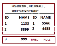3、以左连接为例,如果T_left中存在未匹配到的行。那么把T_left中的这几行以外部行的形式加到上边的结果集中形成新的结果集。
