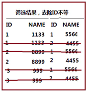 2、ON按条件,对上边的结果集,进行筛选,形成新的结果集。